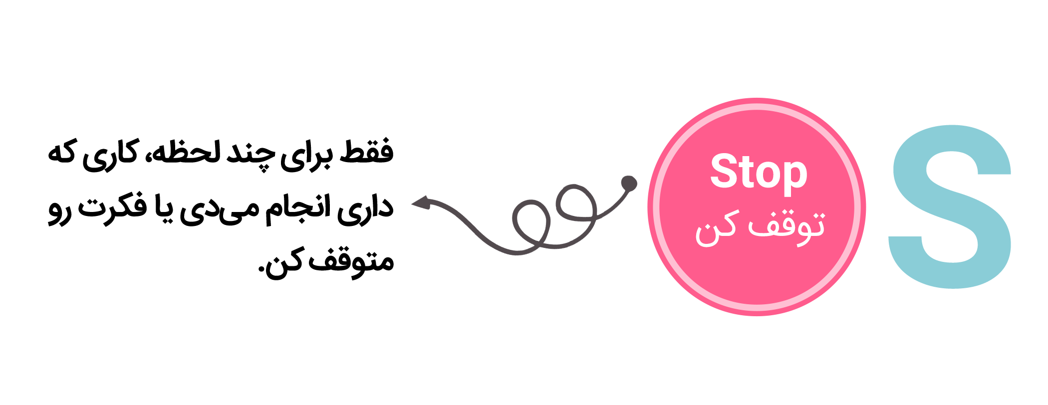 تکنیک S.T.O.P یکی از تمرینهای ساده و موثر در ذهنآگاهی (MBCT) هست که کمک میکنه توی چنین لحظههایی یه توقف آگاهانه ایجاد کنیم.