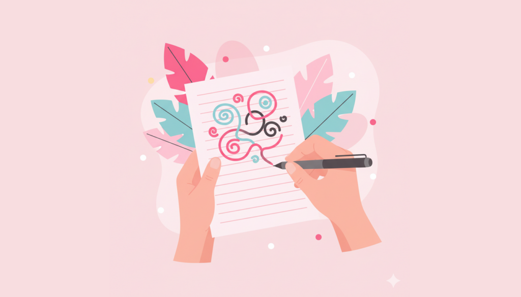 ۳. حالا بدون سانسور یا قضاوت، هر فکری که این روزها باعث نگرانی، اضطراب یا ترس شده رو یادداشت کن. جملهها میتونن کامل یا ناقص باشن. مهم نیست. فقط بنویس.